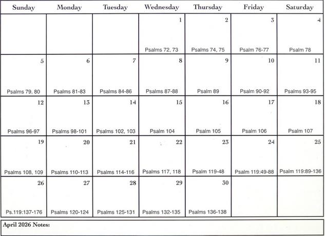 F.Y.I. The reading schedule, not grids is now on the Calendar's Page, May 2026 - February 2027.