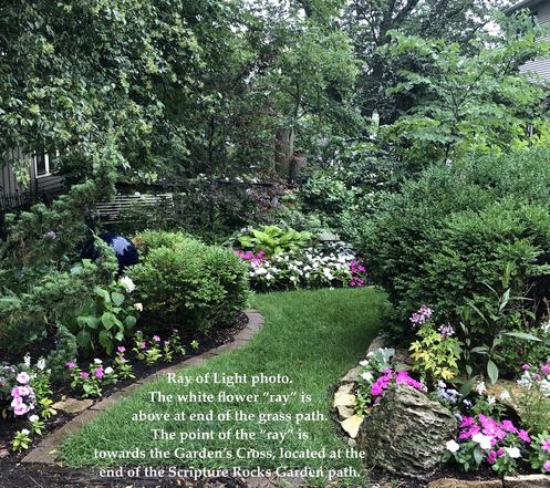 Due to his awkward walk, which he briefly explained, I rose to join him and we slowly walked the length of the front sidewalk/trail flowers. We often stopped in front of a few flowers so he could share what he particularly liked it. When we reached the Scripture Rocks Garden's gate, I began reading the posting of the Scripture Rock texts that we keep posted above a flower cart next to the gate. "Know that the Lord is God" I said then he piped in from memory "It is He who made us, and we are His." Then the next: "for all have sinned" I began, "and fall short of the glory of God" he finished. In tandem we read all the rest of the Scripture Rocks texts. After the last text read, Ephesians 2:8-9, we stood there a few moments lost in our own thoughts. I asked him if he wanted to go through the gate to actually see each rock. He declined and it was his his reason for not wanting to go through the gate that was something I'll treasure and remember the rest of my life.