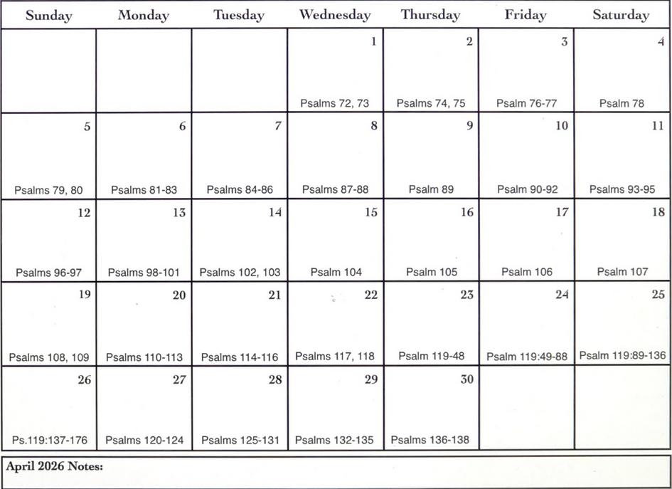 β April Psalms 72 - 138