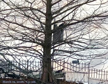 Monday, March 23, 2026. A pair of Wood Ducks are back! From 6:30-7 am, no sightings. Looking out again at 8 am a pair was spotted. Observations/Comments below.